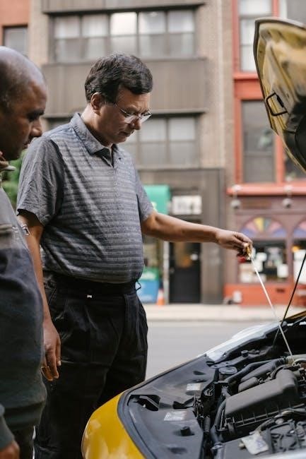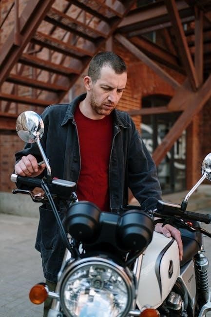 Begin by turning on the headlights and inspecting both low and high beams for any dimming or flickering‚ which may indicate a failing bulb. Ensure both headlamps are functioning equally. If one bulb is out‚ replace it with the correct type specified in the manual. Check for visible damage‚ such as cracks or discoloration‚ which can affect light output. Use a multimeter to test the bulb’s resistance if unsure. Always handle bulbs carefully to avoid oil from your skin causing premature failure. If both bulbs appear intact‚ proceed to check fuses‚ relays‚ or wiring for potential issues. Regular bulb inspections can prevent unexpected failures and maintain road safety.